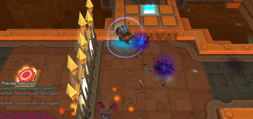 Tried again after it timed out. It froze up within about three minutes of entering Toy Soldiers, directly after a server downtime notice. No sign of the shadow damage things you guys are talking about. Going to wait until after the reboot to try again.