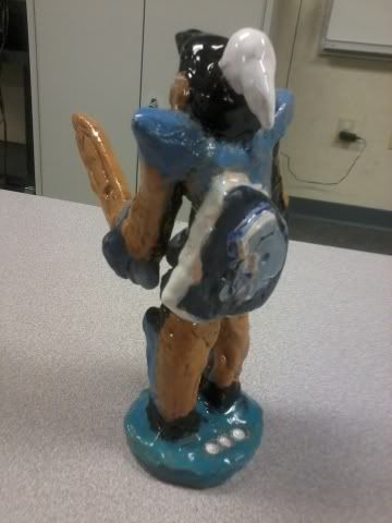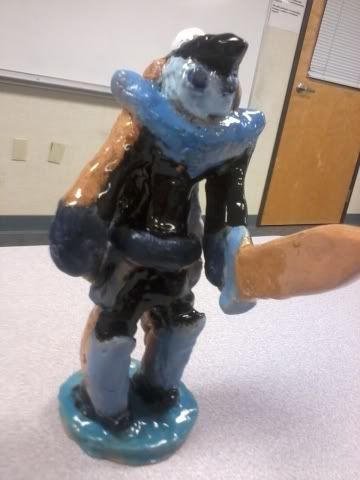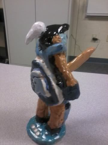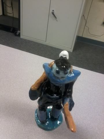 So in my art class I decided to make a cobalt knight with clay which came out decent I guess but it was pretty hard. I also totally screwed the painting up, like if you look at the "sandish" colored area's those where supposed to be grey-silverish. I plan to spray paint it gold soon because I'm not really pleased with the colors. Now that I think of it, I should have made a Snarbolax Set, Magnus figure. It would have been easier to paint and soo cool to have around.