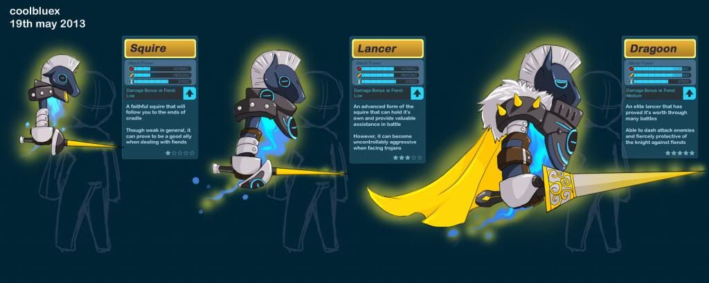 A much developed series of Mechaknights except much smaller. Despite there size they are still able to fight along side knights. The very first one was called Mk1 or Frozen golem because of the Ice that Bosco put on the back of the knight to keep it from over heating.
