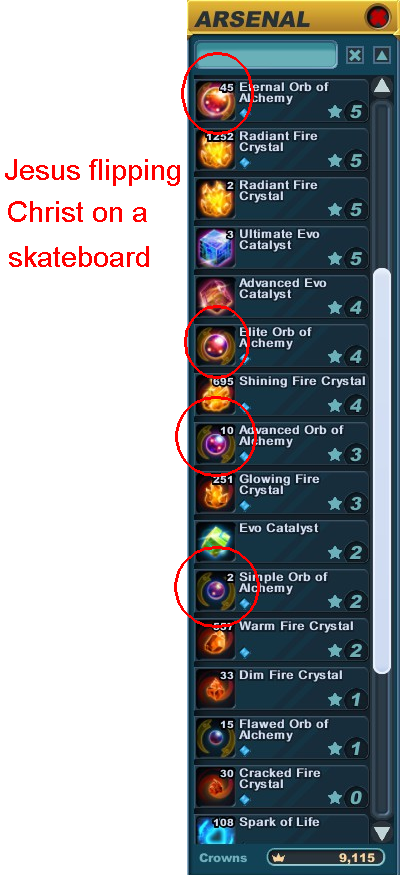 Nice # of Eternal Orbs and Radiant Fire Crystals. I might need some.